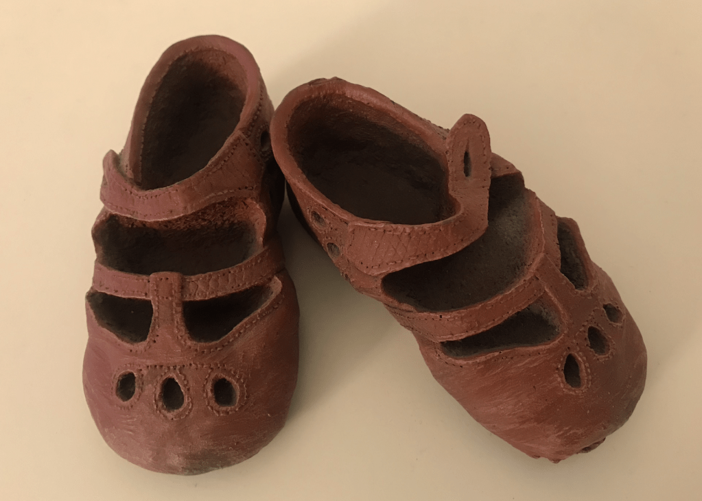 I wonder sometimes if that’s why I have 30 pair of shoes today (I just went into my closet and counted). Granted, most of them are quite casual but I have options no matter what I’m wearing. To be honest, I don’t think about shoes all the time now…though I used to… too much. Why? Because somehow my identity got mixed in with my shoes. I never wanted to have the worst shoes in the circle again (though I don’t think I consciously saw the connection until later in life). Several years ago, for my birthday, my husband bought me a small pair of red ceramic MaryJane’s…the epitome of little girl shoes. He knew my story and wanted to re-frame it. What an incredibly loving thing to do.